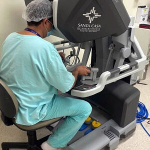 A cirurgia robótica é uma técnica cirúrgica minimamente invasiva, onde um cirurgião opera um robô através de um console, utilizando joysticks para controlar braços robóticos